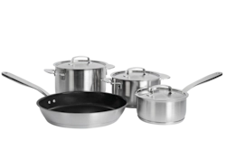 stainless-steel cookware with a matte brushed finish exclusively for Miele.